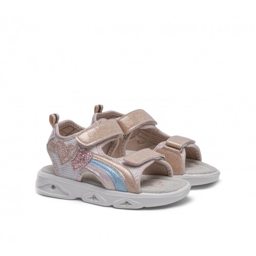 Το μοναδικό σχέδιο με γκλίτερ καρδούλες και πολύχρωμο ουράνιο τόξο χαρίζει μια έξτρα δόση φαντασίας, ενώ ο δερμάτινος πάτος προσφέρει άνεση και σωστή στήριξη όλη μέρα.