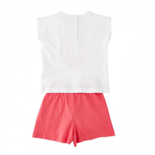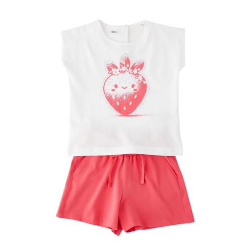 Σετ σορτς με μπλουζάκι για κορίτσια, από την καινούρια συλλογή της I Do. Το μπλουζάκι είναι σε λευκή απόχρωση, έχει στάμπα μπροστά. Το σορτς είναι σε κοραλλι απόχρωση και έχει λάστιχο στην μέση. Ιδανική επιλογή για άνετες εμφανίσεις.